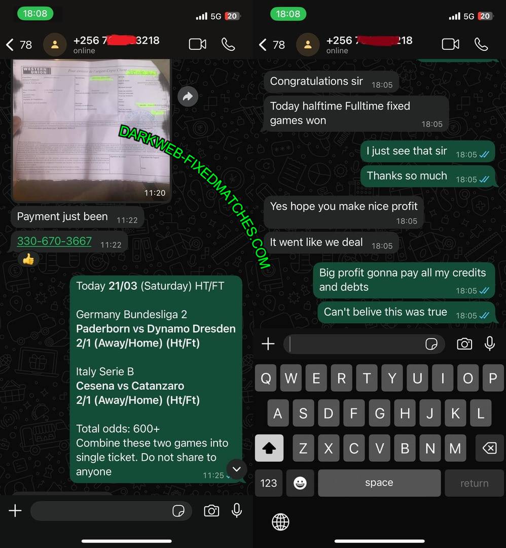 At Dark Web Fixed Matches, we specialize in providing regular halftime full-time rigged matches as well as double fixed matches known as correct score fixed matches. Our services are designed to deliver 100 percent accurate and guaranteed results, ensuring maximum success for our clients.