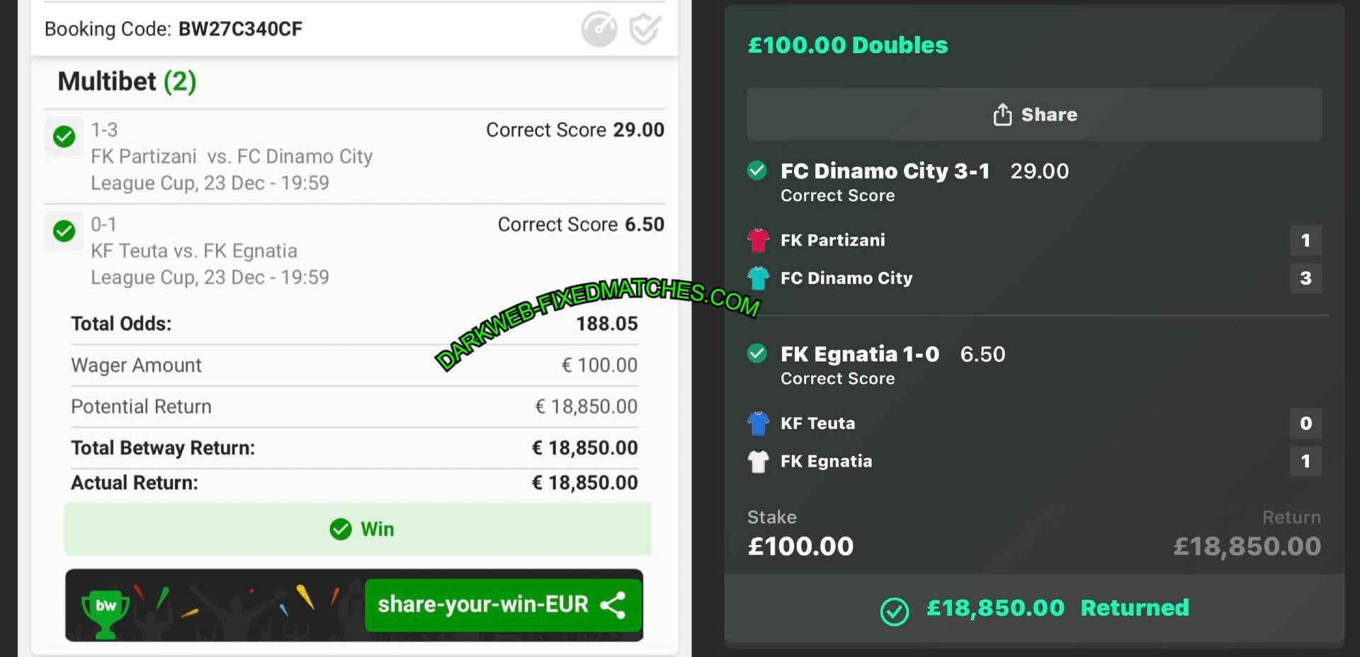 The DARK WEB FIXED MATCHES is the most legit and verified website for football betting tips and manipulated football fixed matches. Surely we offer the best fixed games on the internet.