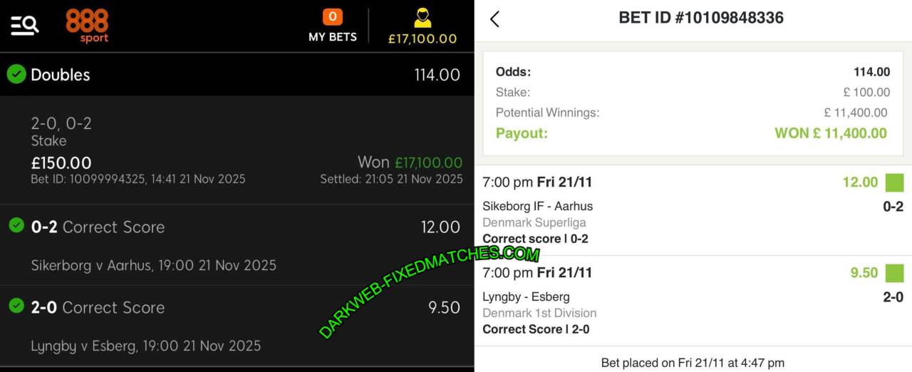 If you looking to buy Correct Score Fixed Matches, you’re at right place. Dark Web Fixed Games website, offers without doubt best and most secured Correct Score Fixed Games Tips.