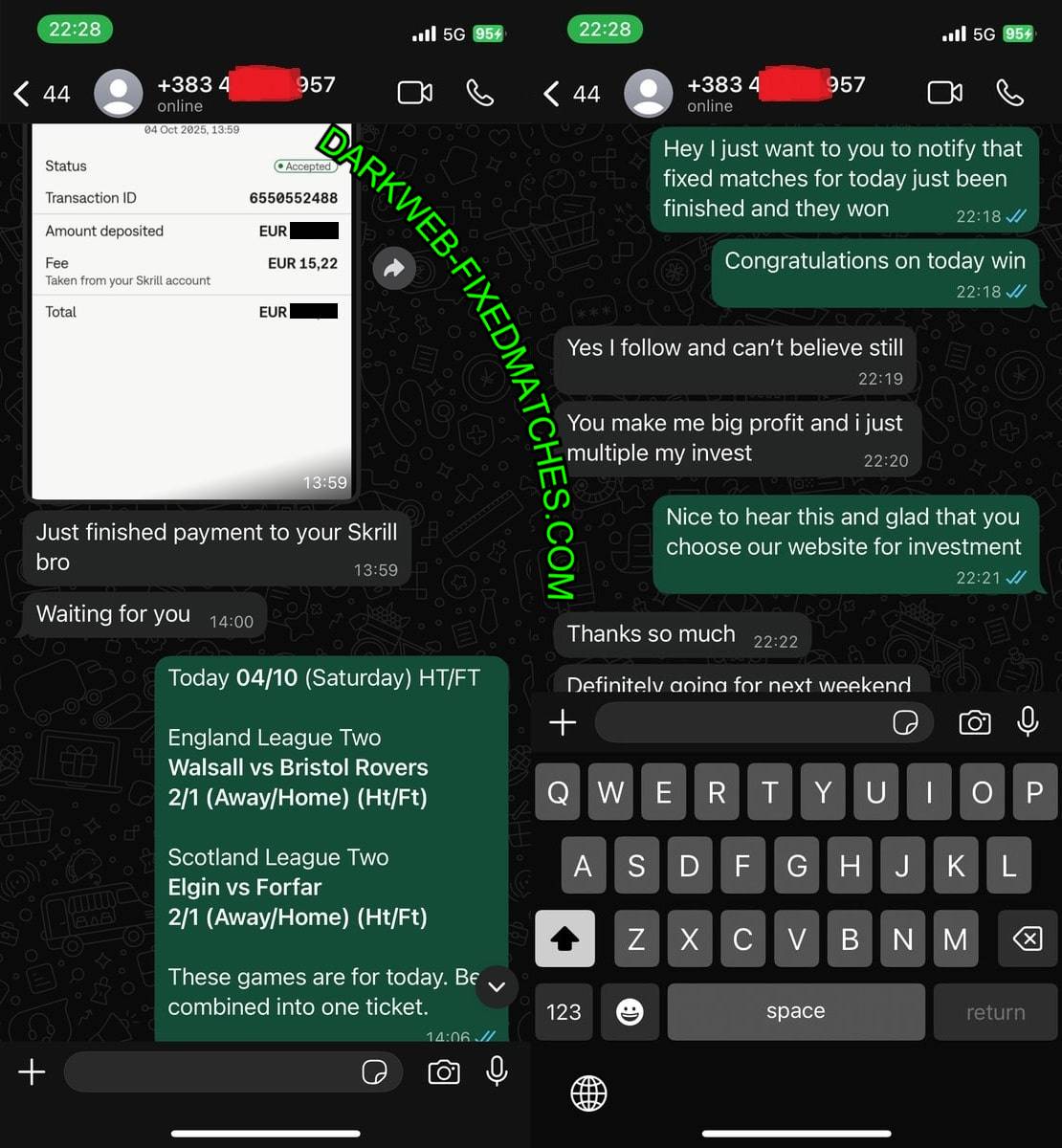HT FT FIXED MATCHES are one of the best way and most secure to make profit fast. Additionally, our exclusive insights not only boost your confidence but also ensure you meet your goals. Trust our team for guaranteed results, and rest assured with our 100% refund policy if a fixed football match is lost. Experience the reliability of the Dark Web Fixed Match site today!